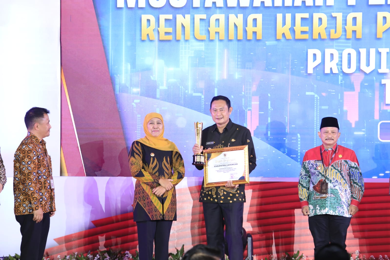 Pemerintah Kabupaten (Pemkab) Lamongan meraih penghargaan pembangunan daerah terbaik I kategori kabupaten tingkat provinsi Jawa Timur Tahun 2023 dari Pemerintah Provinsi (Pemprov) Jawa Timur. Penghargaan diserahkan langsung oleh Gubernur Jatim, Khofifah Indar Parawansa dalam acara musyawarah perencanaan pembangunan (Musrenbang) rencana kerja pemerintah daerah (RKPD) Tahun 2024 di Hotel ShangriLa, Surabaya, kemarin (13/4).