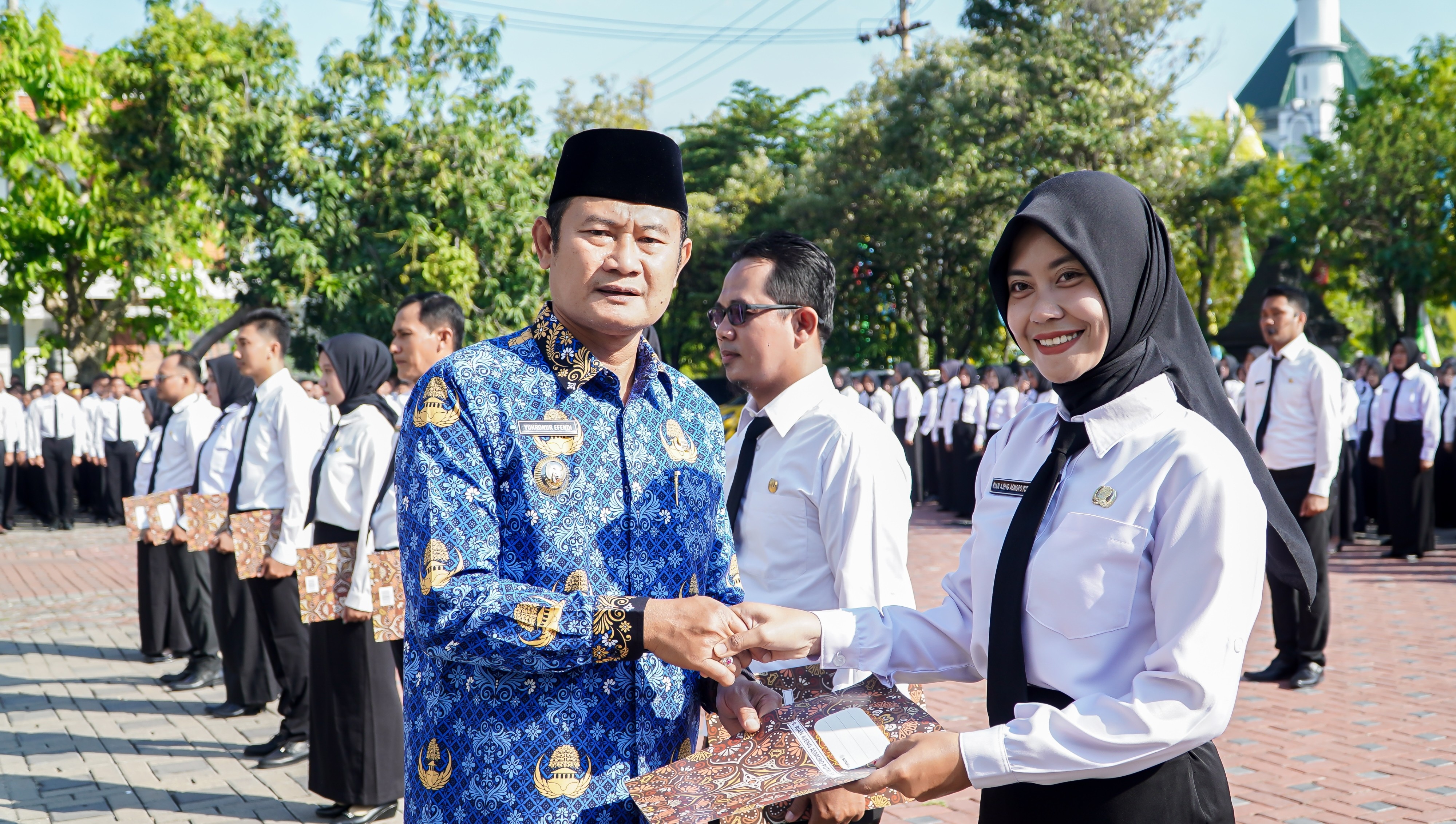 Bupati Lamongan Yuhronur Efendi serahkan surat keputusan (SK) kepada 980 Pegawai Pemerintah dengan Perjanjian Kerja (PPPK) jabatan fungsional guru formasi 2022, Senin (17/7/2023) di halaman Pemkab Lamongan.