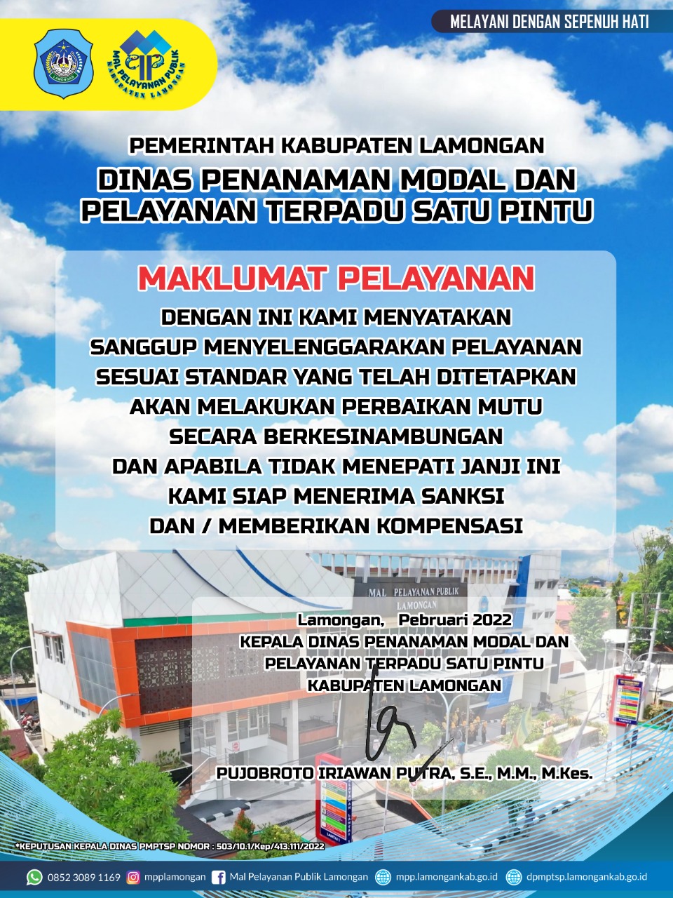 Maklumat Pelayanan Kami selalu siap berusaha memberikan pelayanan perizinan dan non-perizinan dengan sepenuh hati